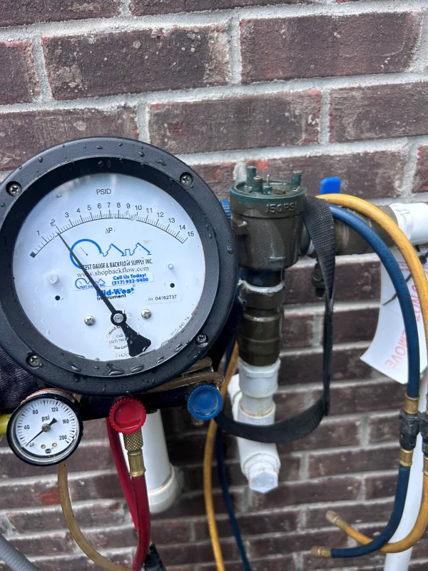 In Indiana, most cities and water utilities require annual testing for irrigation backflow systems. The test is quick and simple — a certified plumber connects test gauges to your backflow device to make sure the internal valves and seals are working properly.